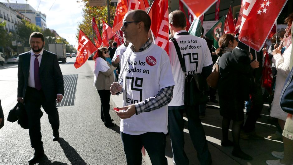 CCOO se ha concentrado frente a la sede los servicios centrales de Evo Banco en Madrid contra el ERE en Evo Banco.