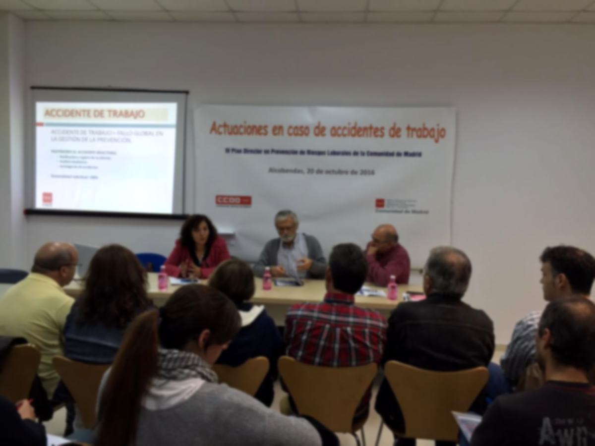 Se celebró el 20 de octubre, en la sede de CCOO en Alcobendas, una jornada sobre actuaciones en caso de accidente de trabajo, organizada por la Unión Comarcal Norte del sindicato, que fue muy valorada, por cuanto significa un reforzamiento formativo, que va ha permitir a los delegados abordar de un modo más eficaz los accidentes de trabajo.