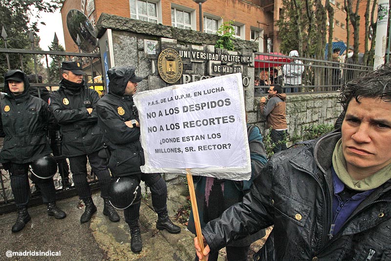 Este despido fue acordado por el Consejo de Gobierno de la UPM y, por encima de todo y de todos, la Universidad se ha empecinado en ejecutar. Primero se realizó una amortización de las plazas, después se procedió a una readmisión formal pero no efectiva en los puestos de trabajo, seguida de una serie de despidos objetivos y, finalmente, ha culminado el proceso con el despido colectivo de los que insistían en defender su derecho a trabajar.