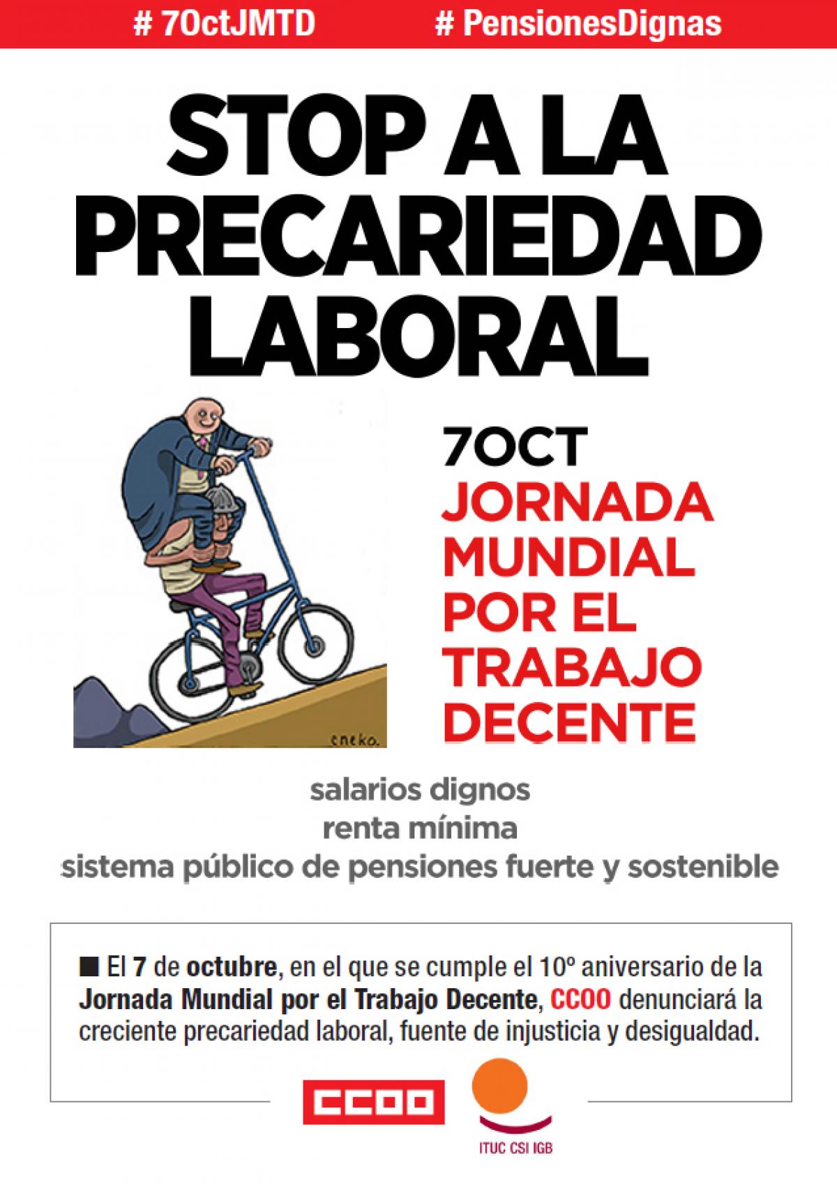 El 7 de octubre, bajo el lema “Alto a la codicia corporativa. El mundo necesita un aumento de sueldo”, las organizaciones sindicales celebran la Jornada Mundial del Trabajo Decente.