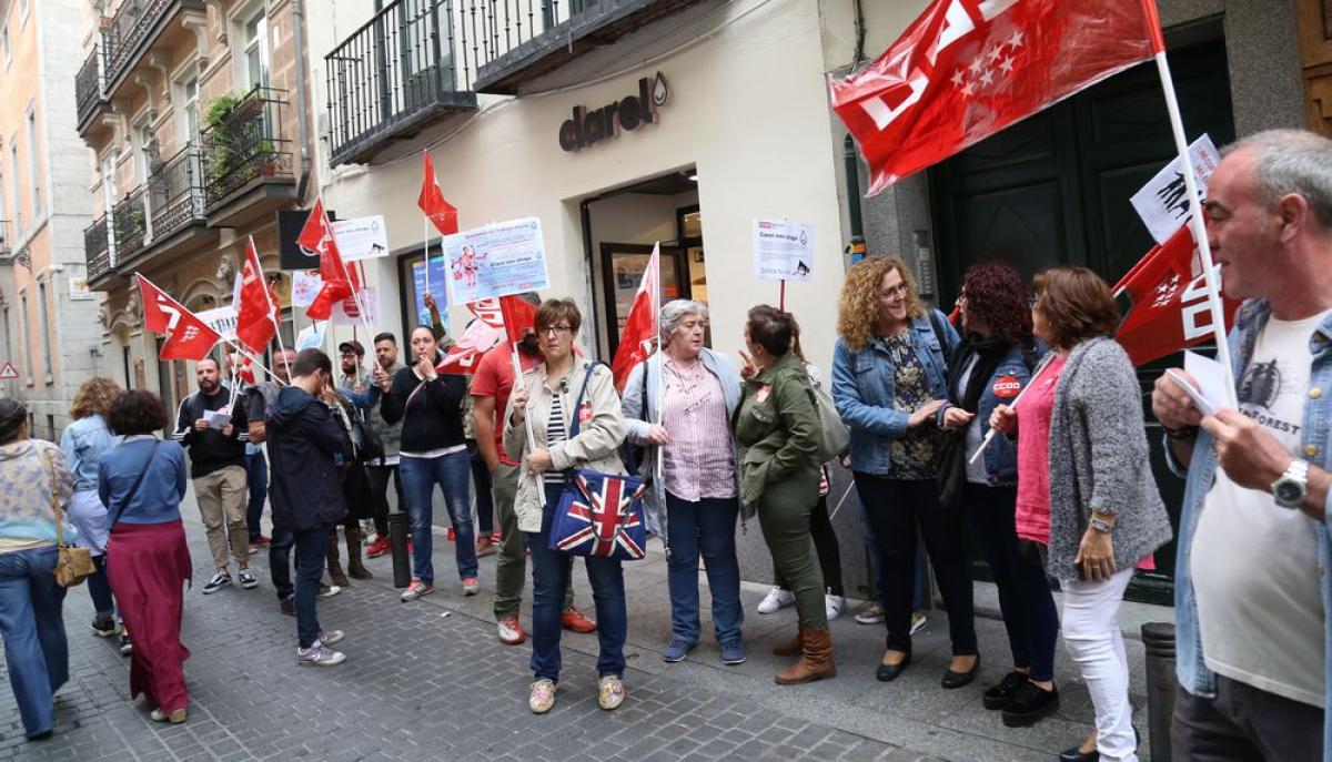 La Federación de Servicios de CCOO de Madrid se ha concentrado este martes bajo el lema “Clarel nos ahoga, queremos un trabajo digno” para exigir unas mejores condiciones laborales para la plantilla de perfumerías Clarel.