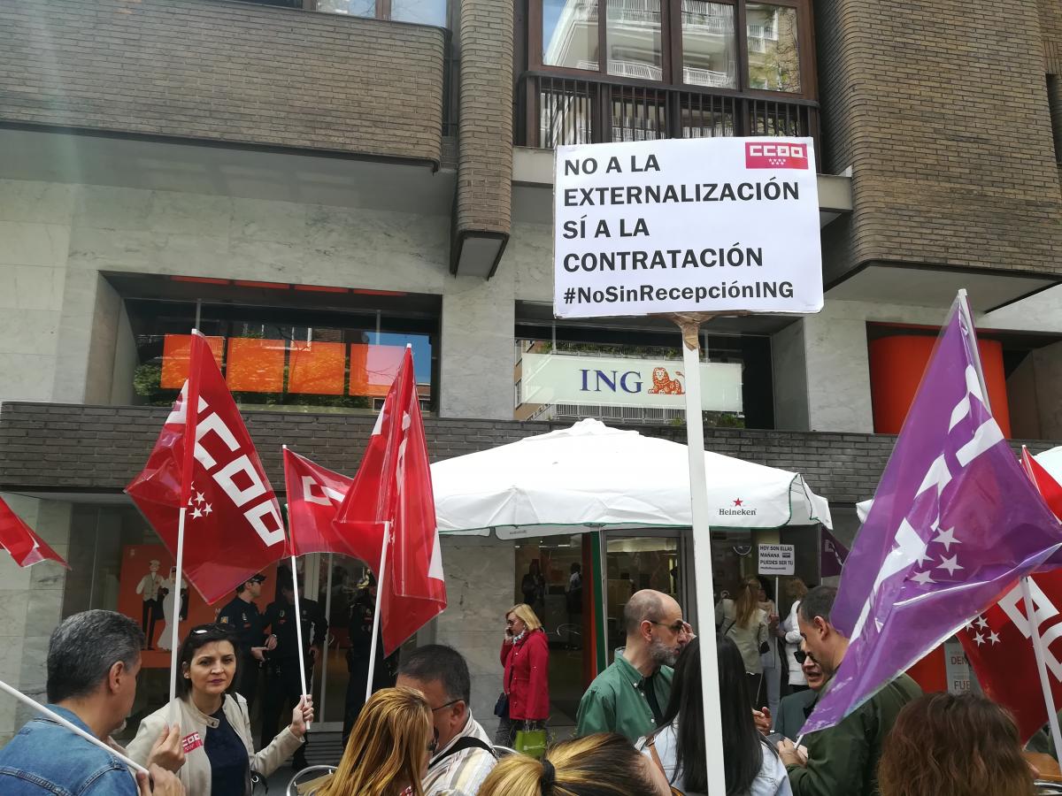 CCOO se ha concentrado en contra del proceso de externalización de la totalidad del servicio de recepción que se está llevando a cabo en todos los centros de trabajo de ING.