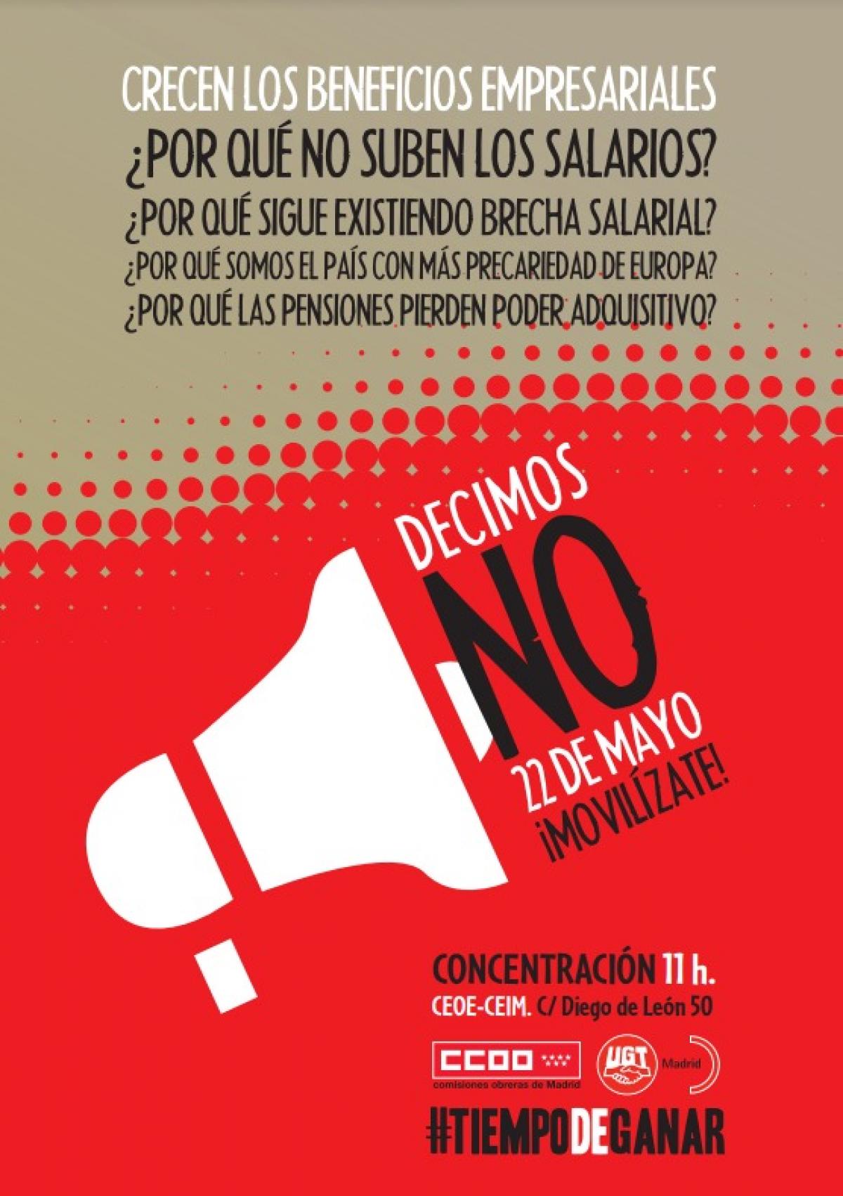 • Mañana martes 22 de mayo a las 11h, frente a la CEOE-CEIM, c/ Diego de León, 50. Madrid