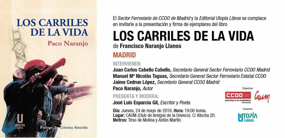 En el acto, además del autor, intervendrán el secretario general de CCOO de Madrid, Jaime Cedrún, el secretario general del Sector Ferroviario de CCOO de Madrid, Juan Carlos Cabello, y el secretario general del Sector Ferroviario estatal de CCOO, Manuel Nicolás Taguas. El acto será presentado y moderado por el escritor José Luis Esparcia.