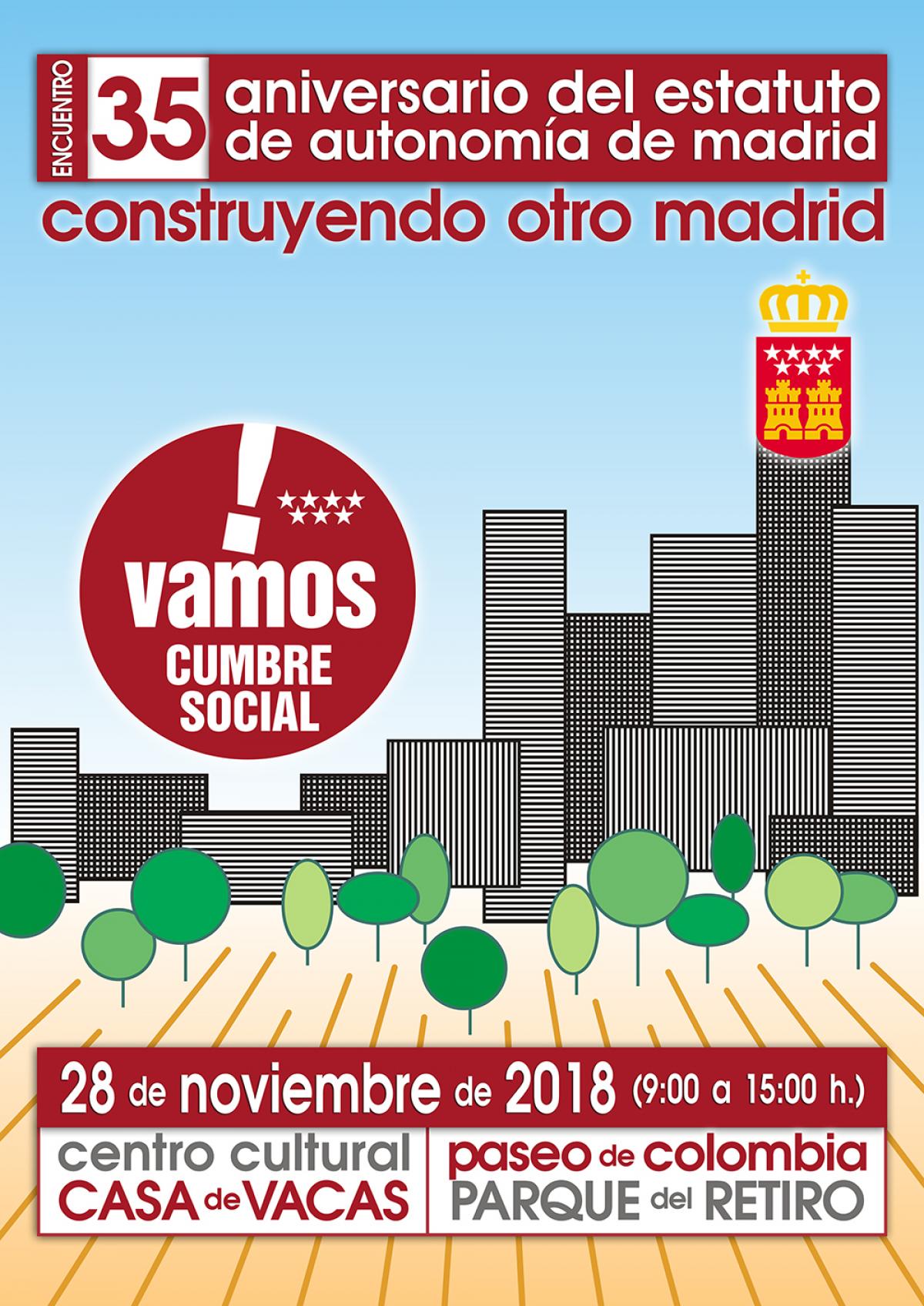 Dentro de esta labor, se ha organizado el Encuentro CONSTRUYENDO OTRO MADRID en el que se pretende realizar un recorrido por la evolución de nuestra región, en estas más de tres décadas, reflexionar sobre las necesidades existentes y retos de futuro y comprometer a las instituciones en esos objetivos, ante la conveniencia del blindaje de nuestros derechos en un nuevo marco legal autonómico.