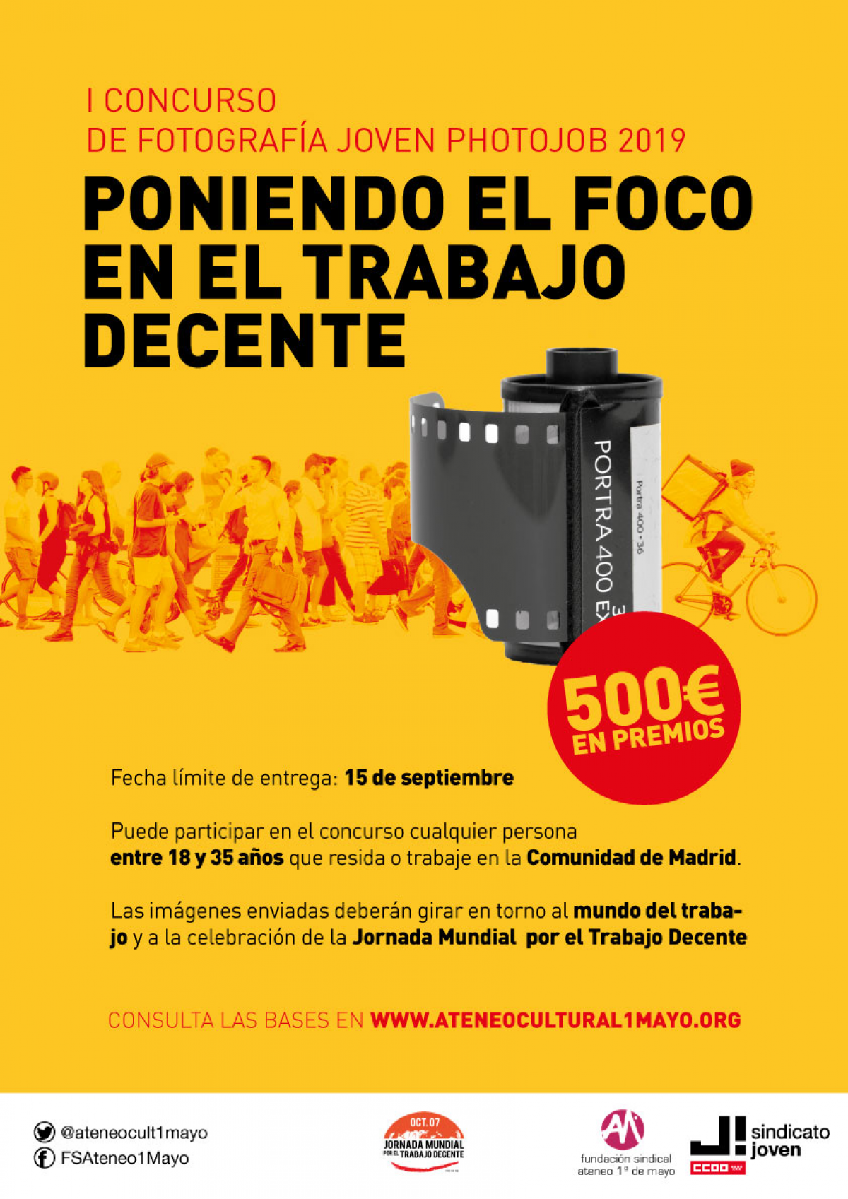 El Sindicato Joven de CCOO Madrid, junto a la Fundación Sindical Ateneo 1 de Mayo, pone en marcha la primera edición de Photojob,un concurso de fotografía joven centrado en el trabajo decente.