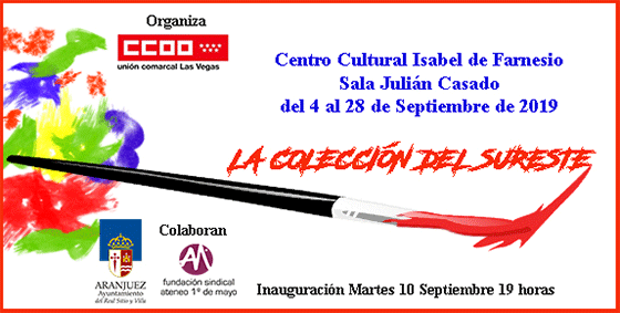 El próximo martes, 10 de septiembre, a las 19 horas, se inaugurará la exposición “25º aniversario de la Colección del Sureste de CCOO” en el Centro Cultural Isabel de Farnesio (Capitán, 39), de Aranjuez. Las obras estarán expuestas en la Sala Julián Casado del 4 al 28 de septiembre.