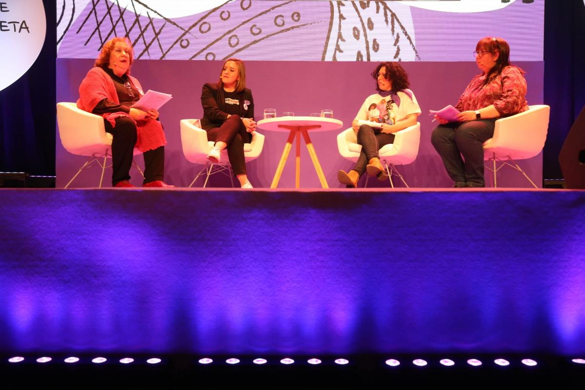 Tras la primera intervención a cargo del secretario general de CCOO, Unai Sordo, hubo una mesa redonda con tres delegadas de CCOO, Margot Sastre, Aurora Richarte y Eva Díaz de Terán –moderada por Pilar Morales, secretaria de Mujeres de CCOO de Madrid– que abordaron la participación de las sindicalistas y su lucha por los derechos y la igualdad; una actuación de Amparo Climent, Gloria Vega, Miriam Tejedor y Miriam Esohe, bajo la producción de Pilar Sancho sobre “Las cartas perdidas”, y seguidamente una mesa redonda de las tres secretarias generales territoriales de CCOO: Encarna Chacón, de Extremadura; Loli García, de Euskadi, y Nuria López, de Andalucía, que fue moderada por Esther Gimeno. Clausuró el encuentro Elena Blasco Martín, secretaria de Mujeres e Igualdad de CCOO.