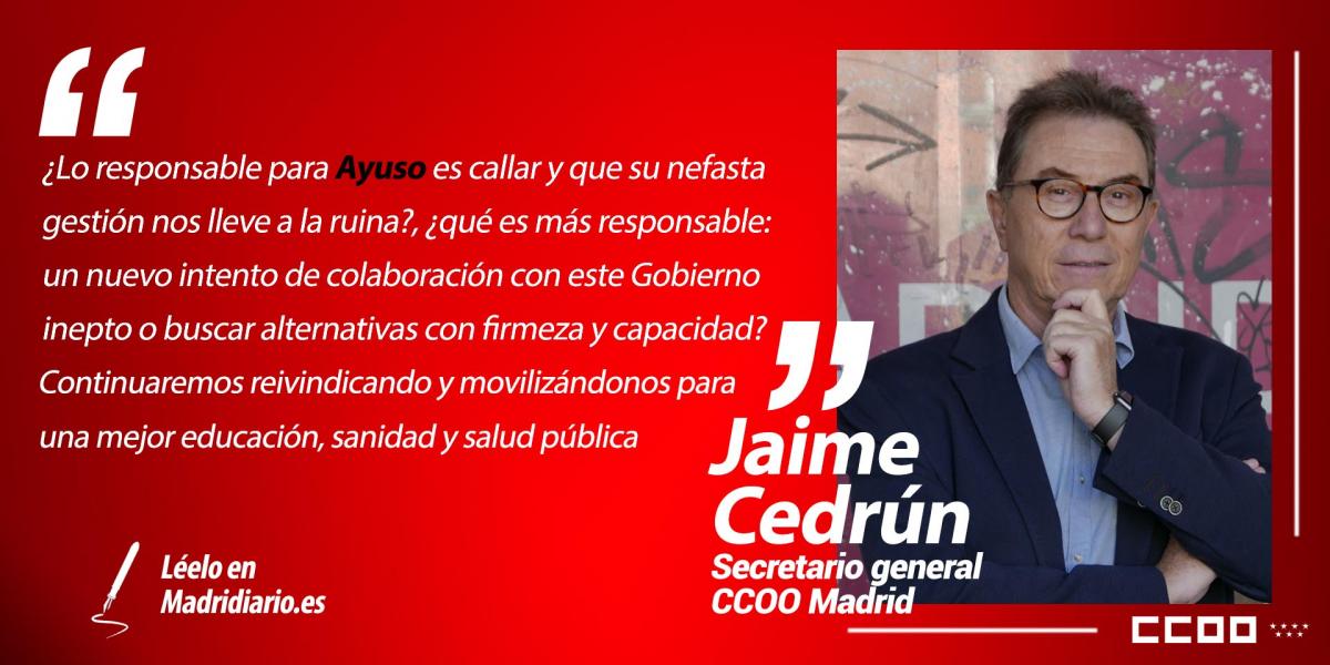 • Artículo de opinión de Jaime Cedrún, secretario general de CCOO de Madrid