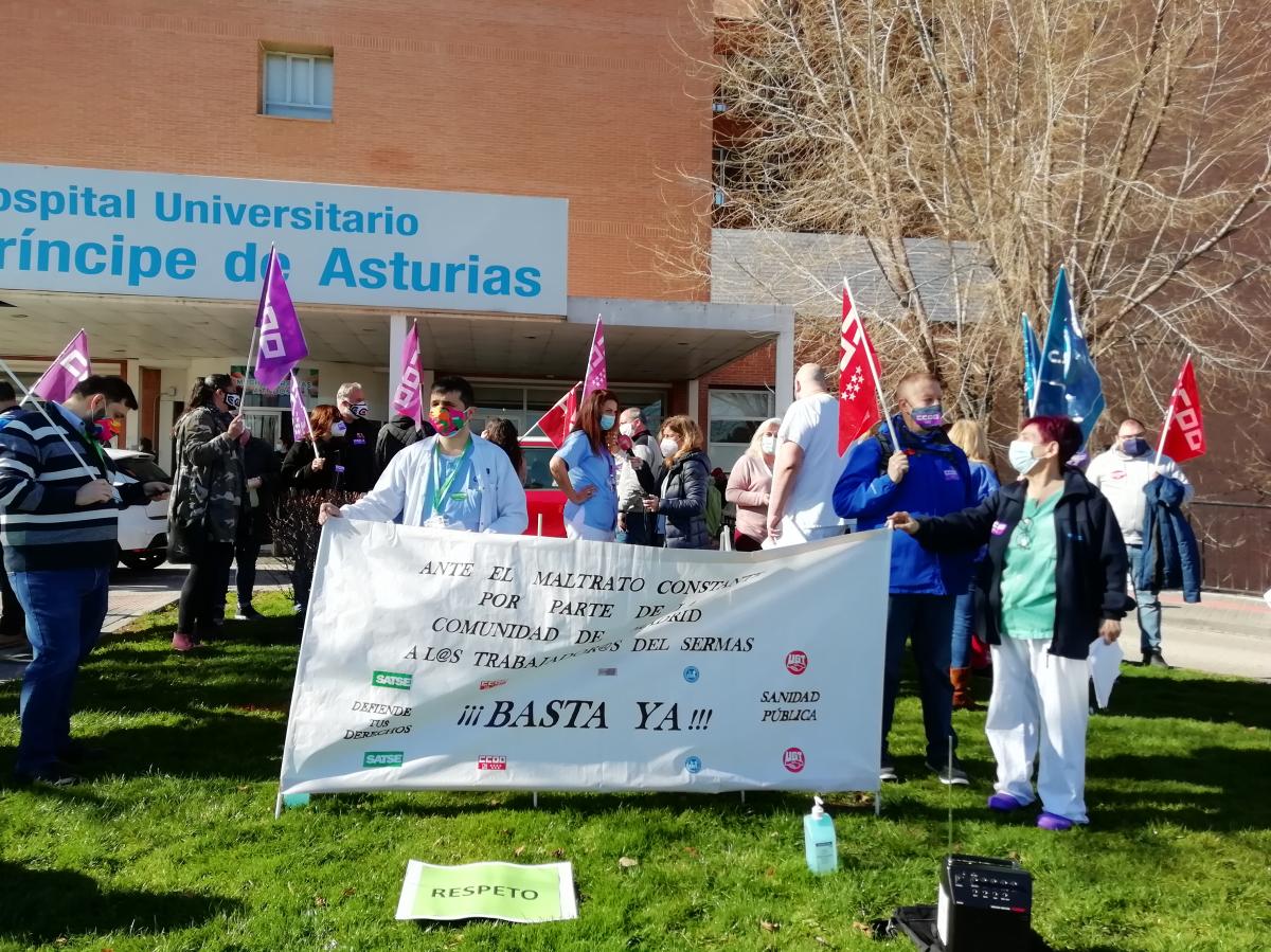 Las trabajadoras y trabajadores del Hospital Universitario Príncipe de Asturias e Alcalá de Henares se han visto arropadas por parte de la ciudadanía, que ha reforzado con su presencia las demandas de este colectivo esencial para la sociedad y que se siente maltratado.