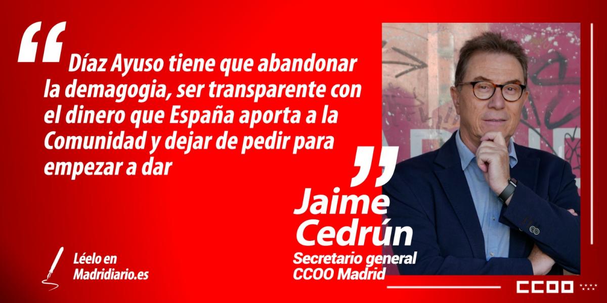 • Artículo de opinión de Jaime Cedrún, secretario general de CCOO Madrid