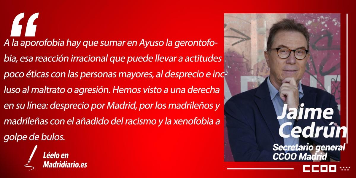 • Artículo de opinión de Jaime Cedrún, secretario general de CCOO Madrid