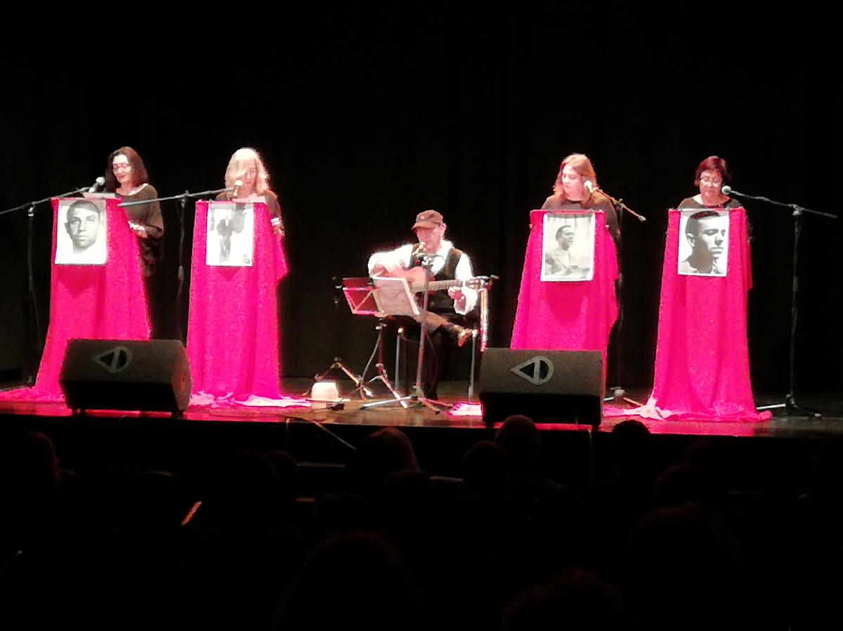 El público asistente estableció una especial conexión con las voces, y canciones de estas mujeres: Juana, Maribel, Maria Antonia y María Jesús, acompañadas por la guitarra de Victor. Conexión plasmada al final de la representación con prácticamente toda la sala en pie, ovacionando la calidad y calidez del mensaje transmitido. Mensaje que según la representante del Comité Oscar Romero de Torrejón, tras dar las gracias a CCOO por la cesión de la sala, se transformará en medios económicos para el apoyo de la Comisión de Derechos Humanos de El Salvador, país castigado por la violencia institucional, cuyo presidente acaba de declarar el Estado de excepción.
